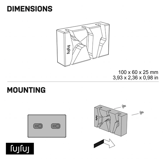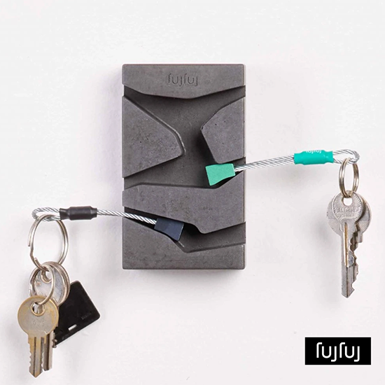 Porte-clés artisanal en béton résistant. Il présente trois fissures inspirées des veines de la roche et est conçu pour accueillir les porte-clés Fujfuj (cames – porte-clés inclus). Installation facile avec des vis.