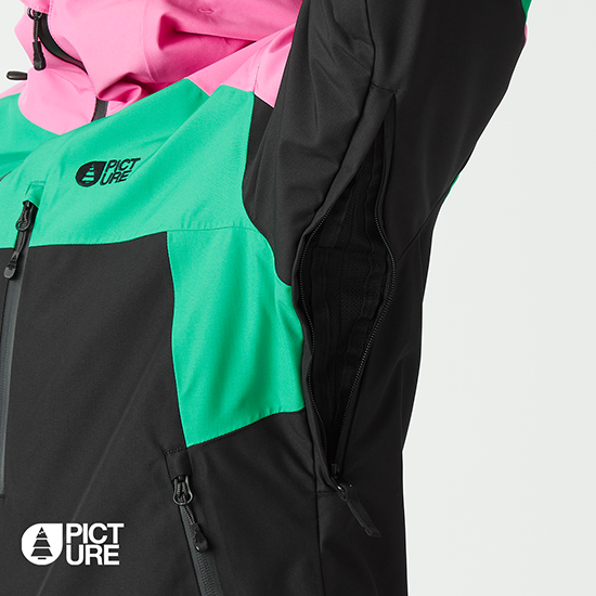 + Poche poitrine avec zip YKK® imperméable et accès rapide intérieur+ Système de réglage aux poignets