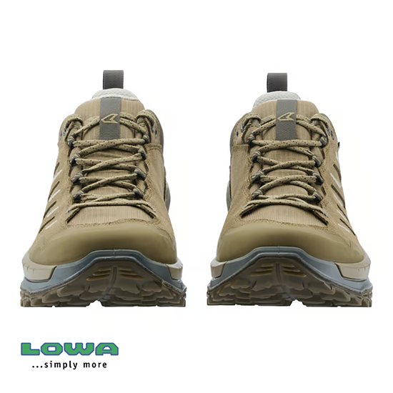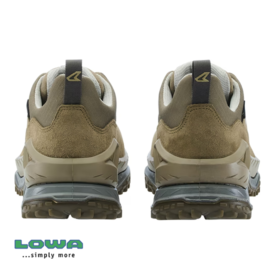 La chaussure de randonnée dynamique INNOVO GTX LO est dotée d’une semelle intermédiaire LOWA® DYNAPU® à double injection et rembourrée confortablement et d’une semelle extérieure redessinée avec un style « chunky », qui offre une adhérence optimale grâce au design multidirectionnel des crampons et à la surface de contact résultante plus grande. La chaussure de randonnée innove en termes de confort et bénéficie d’un mélange de matériaux robuste en cuir fendu et textile, d’une membrane GORE-TEX imperméable et de nombreuses surfaces respirantes. Ces caractéristiques sont complétées par une boîte à orteils surélevée et des tirettes pour faciliter l’entrée et la sortie. Grâce à sa semelle solide et à la tige flexible mais robuste, l’INNOVO GTX LO brille avec un grand mélange de stabilité, de soutien et de dynamique.