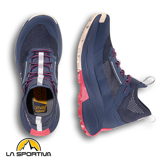 + Impact Brake System Mountain Running – Ce système innovant est appliqué à la semelle afin qu’elle absorbe l’impact négatif au sol, impulse la traction en montée et améliore l’accroche en descente.