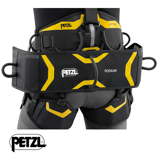 La sellette PODIUM permet aux travailleurs en hauteur et sur cordes, en accès difficile, de s’asseoir quand les phases de travail en suspension sont longues, leur procurant ainsi plus de confort. Elle est facilement réglable, grâce à ses boucles DOUBLEBACK et est dotée de trois porte-matériel. La connexion au harnais est possible via les T-BAR, qui se connectent directement aux manilles ou via des connecteurs ou mousquetons-accessoires type MINO.